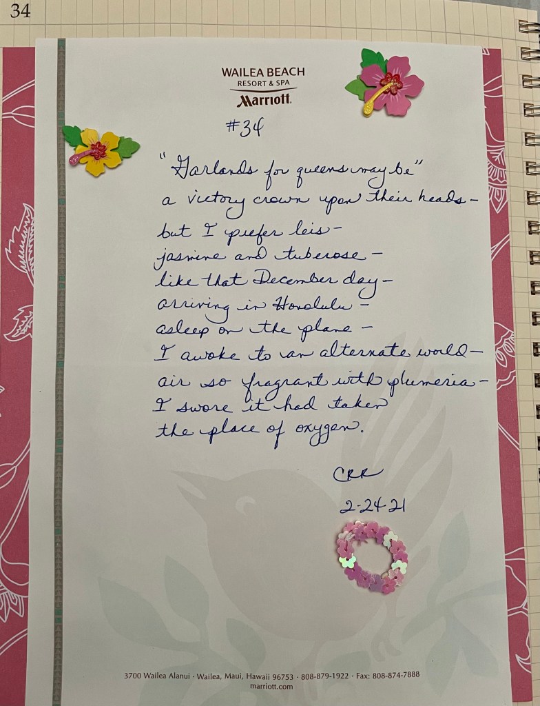 Fast forward 166 years and that’s pretty close to how long it feels like it’s been since the pandemic brought our travel plans to a halt. Travel is “our thing”. My husband and I love to travel to new places and experience new cultures, foods, and vistas. I retired from teaching in June of 2019 and in the 9 months before the pandemic hit , we were lucky enough to take 3 trips and visit 10 different countries. It literally feels like eons ago, but the memories remain. The sights, smells and sounds live on forever in our minds, like those of our honeymoon 15 years ago in Hawaii, where the air is truly rare. Today’s Carol and Emily project remembers that.