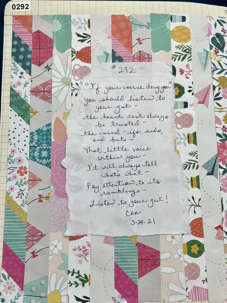 My nerve has denied me on multiple occasions. I’ve been afraid to do quite a few things in my life. To speak in front of groups without my heart palpitating out of my chest took years. When I went skydiving ,I had to be bumped out by the instructor. It ended up being one of the most amazing experiences of my life. Sometimes pride interceded, and said I could not let myself fail at this, sometimes foolishness stepped in and said aww, come on, do it- it’ll be fine, sometimes my heart said yes when it should have said no, and sometimes my mind overthought the situation so much that a chance was missed. And then there were the times I listened to my gut. When it told me to turn away, slow the roll, dive in or take the leap. My gut has never steered me wrong, but I didn’t always listen to it, and that took me naked, down some brambly ass paths.