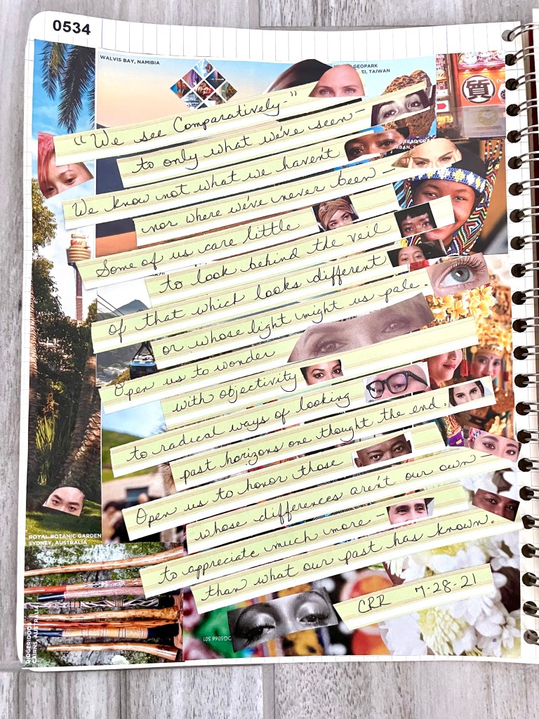 The two quotes above illustrate the same idea that Emily proposed in poem #534, that we see things through our personal lenses of likeness and contrast. Not unlike now, but certainly more during her time, the opportunity to travel far was limited to those wealthy enough to do so. Today we have the whole world at our fingertips, literally, through our devices. If unable to travel, we can virtually experience a trip anywhere around the planet to view the many wonders of people, places and lifestyles foreign to us. No matter how we connect with others, we still perceive them through the lens of who we are. I wrote this because I think we all (including me) need to be reminded of that fact, and to appreciate the differences that exist in our human family without comparing them to ourselves.