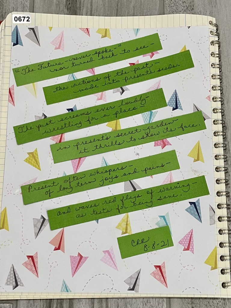 My process for writing these Carol and Emily poems is to try NOT to read Emily’s before I write mine. Although I’ve read much of her work at one time or another in the past, for the purposes of this project, I tried to only read the first lines and wrote each one of those on the top of a page in a huge stack of journals. During each writing session, I randomly choose one and flip through it, until I come upon a first line that strikes me, and I go to work on that. After I’ve written my poem, I go back and read Emily’s as well as any analysis of it.