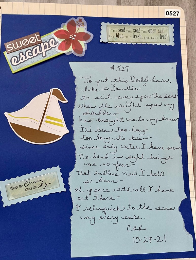 Then, as now, life can be overwhelming and hard and we just need to put the burden bundle down for a bit, close the door on it (or open another). Being on the ocean and especially far from land has always been the salve I need. It’s there that I go off the grid, leave technology behind and imagine myself as one with the sea, powerful, full of wonders, and with endless horizons. I long to be there now, landlocked as I have been by the pandemic woes of this past almost 2 years.
